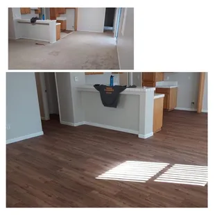 SQ Flooring is great, if you like to have a floor crew perpetually in your home for repairs of their shoddy work, and to have a sub par result even after several repairs once the 1 year warrenty expires. To begin with I was quoted a price and a timetable. The first floor job took twice as long as quoted and had to be completely redone 14 days later. I have had to have them come out several times since for repairs of poor quality work, and as of writing this my warrenty is expired and my flooring is a mess. I have several different threshold transitions (that don't match) places where the floor flexes enough to have already cracked the flooring they installed (was promised this would not be an issue) as well as off gaps and poorly adhered trim boards. All of this in top of being told my price included repainting my trim boards, which was never done. And as icing on the cake, my last repair (requested help in early July) was not completed until the end of October as the owner "forgot" repeatedly. So now I am out $8k and have floors that are no more safe for my toddlers than the floors I paid to have replaced.