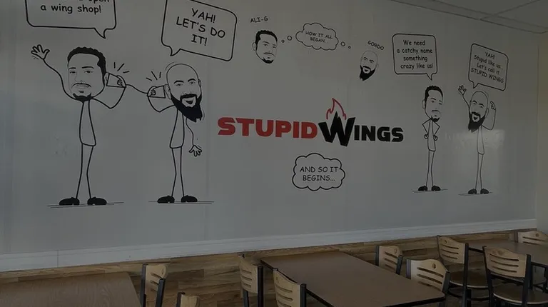 Absolutely loved this place! We were on the east side and were getting Hangry! Took a small drive and spotted Stupid Wings. I remember seeing it a few times on Yelp and quickly swooped into a parking spot. My first observation is the mess that is the Mister Car Wash! WTH?! Is this place the only car wash on this side of town?! I seen about 4 close call accidents in 10 minutes!Back to the restaurant...once you get inside it has the cutest stick figure murals all over every wall! Even on the fountain soda machine. The menu is pretty easy to understand and doesn't offer too many items. The lady at the register was super sweet, friendly and informative. I decided to try out the Stupid Wings with the lemon pepper flavor and the hubby went with the Nashville Hot Chicken Sammich (medium stupid level). Our order took about 15 minutes but that is ok with me because at least you know it's fresh. Everything was delicious! I ended up asking for extra special sauce for my fries and a side of pickles. The pickles were a great addition!We will most definitely come back the next time we're in the area. I need another shot at the stupid fries with a different flavor.