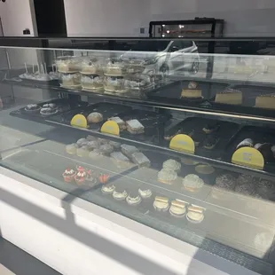 How do you open at 12 and we show up at 1pm and nothing will be out and ready for sale for another 45 minutes? And your cashier sitting there wrapped in a blanket in a food place, yuuuk? Not appealing or appropriate. 5 people walked in and out with any purchase, sure loosing lots of sales. The displays were empty, didn't have a welcome appeal and absolutely no presentation to catch your eye. 2 thumbs down, way way way down. Go to Albertsons or safe mart and get your sweets on.