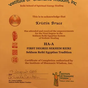Kristin was trained by Doreen Virtue.