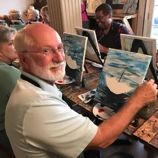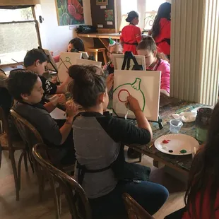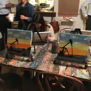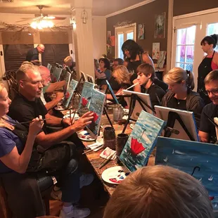 The art room is charming and put us in the mood to be creative. Pam and Lisa are amazing. We will definitely do this again.