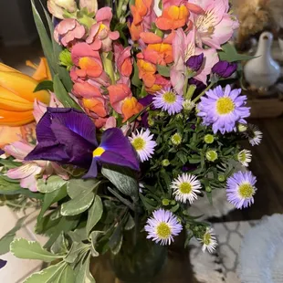 I was super disappointed with the "arrangement" that I ordered. I ordered a spring arrangement online, but there was no other option to expand on what that would be. I assumed (by the price) that it would be full and colorful, but it was embarrassingly sparse - a few carnations (cheap flower), a few other uninteresting flowers and one Gerber daisy. I paid $45 for an "arrangement" that was pitiful at best. I'm so glad I sent a thoughtful message with it because the flowers looked like a 7-year old picked them on the way home from school. It was in a tiny vase and didn't make much of an impact. I won't order from this place again.