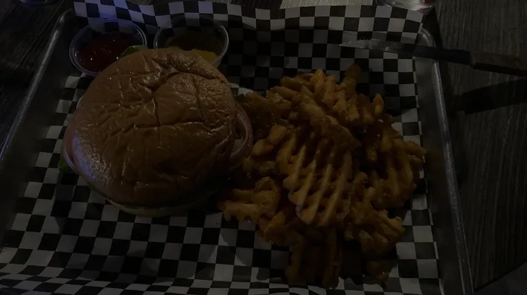 The patriots bar was awesome. The burgers weren't cheap but are well worth it. The owner came over and explained the process of making the meat. Delicious. I'm a burger conisour and rarely eat out anymore but this was exceptional. I also have never had waffle fries that I liked until these. Light crisp on the outside and soft inside. And a coke was $2.00. After a day of digging for pink halite crystals in Trona, this was a welcome unwind.