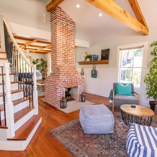 Dinning, fireplace and stairs to guess bedrooms