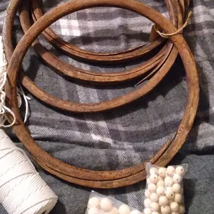 I purchased these wooden poops from this wonderful shop and I made this beautiful macrame wall hanging.