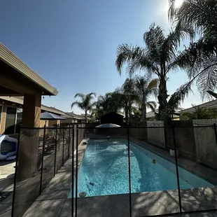 Sometimes, homeowners want a smaller fence that is closer to the pool. In the next photo, look at how we make it work for you!