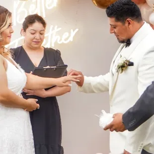 Thank you so much Christina and Nancy. Our wedding was perfect! We opted for a bilingual ceremony and we loved every moment. We had a conversation prior sending payment and Christina was so pleasant to speak to. We decided to book with her the diamond package, then a couple weeks before the event we went over the complete ceremony. She was responsive and was at the event on time. Highly recommended! Thank you for creating a one of a kind experience.