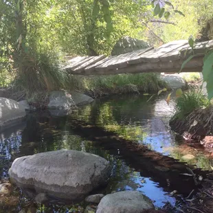 This is a nice trail up in Kernville. It's the desert and wide open so in the summer I can image it gets REALLY hot but it is a lot of fun to walk. If you were to do the whole thing I'm told it's about 15 miles. We have older pups so we only went to the river and back...all in all around trip of about 2ish miles. The water was so clear and untainted! When you get to the river to cross it you can go 1 of 2 ways. The way my pups went (by water!) or there is a cool little wood bridge. It really neat! Once you leave the river there are a LOT of big boulder to walk around and when we stopped to talk to 2 ladies they told us to watch out for snakes. There are a lot of them out here and again I could totally see them sunning themselves on the boulders but we were luck and didn't see any!! Very nice walk but remember to take a LOT of water and a hand towel!!