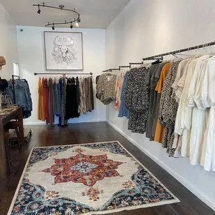 What a great local store to shop in. I needed something to complete an outfit for a wedding and didn't want to drive down the hill. The clothes they carry are so cute. The style spans any adult age group. They offer a casual style that can be dressed up. There's accessories too! The changing rooms are comfortable with couches and mirrors (you gotta know how you're gonna look sitting, right?). I bought FOUR items. I can't wait to NEED something again.
