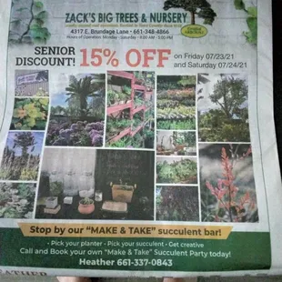 Advertised sale Friday July 23 and Saturday July 24, 2021 8am to 5 pm! Drove from SW Bakersfield not the easiest to find no street sign for business not your typical nursery garden shop! Worst part was Business not open as advertised in Californian ad! Must have sold out early!