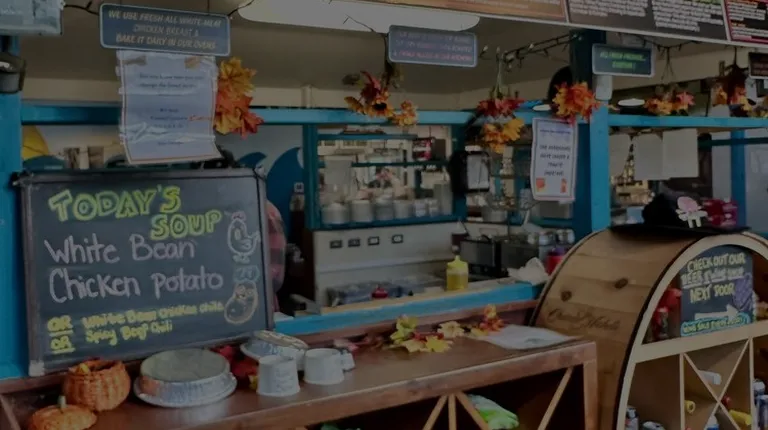 Food was over seasoned Over cookedStrange and weirdThe beef sandwich was just okThe beef bbq was a pile of very dark meat on a roll served with red skinned mashed potato( never seen that one before)The steak salad had pieces of mystery beef?With coating?So to sum it upFood pretty awful There is basically no serviceAmbiance: cheapest chairs , tables,going for funkLike a cement block garageToilets are the tiniest cheap crapNot made for anyone other than a very small person that might weigh 95 pounds