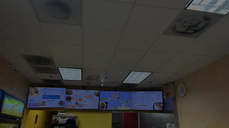 Counter and menu boards on wall