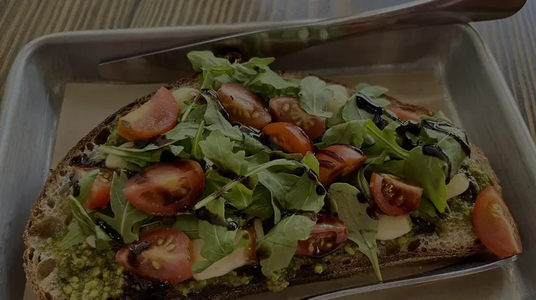 a slice of bread topped with vegetables