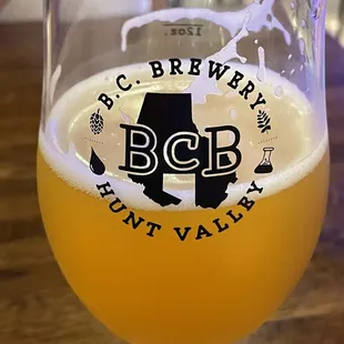 BC Brewing in Hunt Valley, Maryland, offers a fantastic brewery experience tucked away in a business park near the Hunt Valley Towne Center. The space itself is large and inviting, with ample parking and plenty of room inside the taproom, making it ideal for large groups or casual hangouts. One of the standout features is their unique pay-as-you-go tap wall, allowing patrons to pour their own beers and pay by the ounce--perfect for those who want to sample several options without committing to full pours.The on-site kitchen is another major plus. We visited on a Saturday for lunch and ordered the brussels sprout pizza and fish and chips to share. Both dishes exceeded our expectations. The pizza had a great balance of flavors, with the crispy brussels sprouts and tangy balsamic vinegar making for a delightful twist. The fish and chips were perfectly fried with generous portions that hit the spot.When it comes to the beer selection, BC Brewing has something for everyone. From their indulgent dessert sundae stout to the refreshing apple pie cider, there's no shortage of options to explore. We're not big IPA drinkers, but even their mango IPA won us over--definitely a crowd-pleaser for those who love a fruity, hoppy brew.A couple of things to note: the brewery can get pretty crowded, especially during peak hours, so expect a lively atmosphere. It's also family- and pet-friendly, which means you might encounter a mix of children and dogs inside, making for a somewhat hectic but fun vibe.Overall, BC Brewing is a great spot for beer lovers and foodies alike. With a spacious environment, innovative brewing options, and delicious food, it's well worth a visit if you're in the Hunt Valley area.