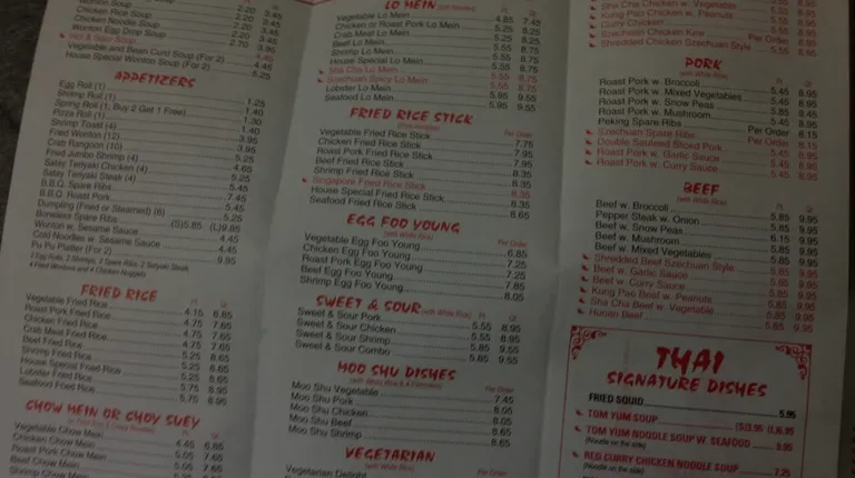 Not just the standard Chinese food here! They also have some Thai menu options. The tom yum soup is really good and the pineapple fried rice with shrimp was great too. Added a little hot oil to it when I got home.