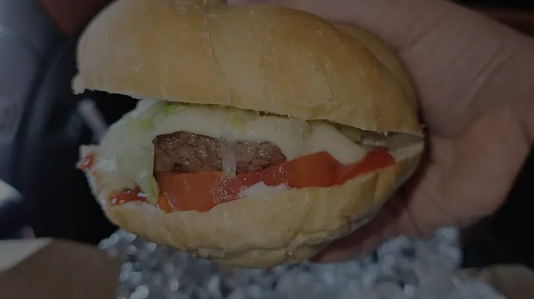 Cheeseburger with lettuce and tomato with ketchup and mayonnaise.