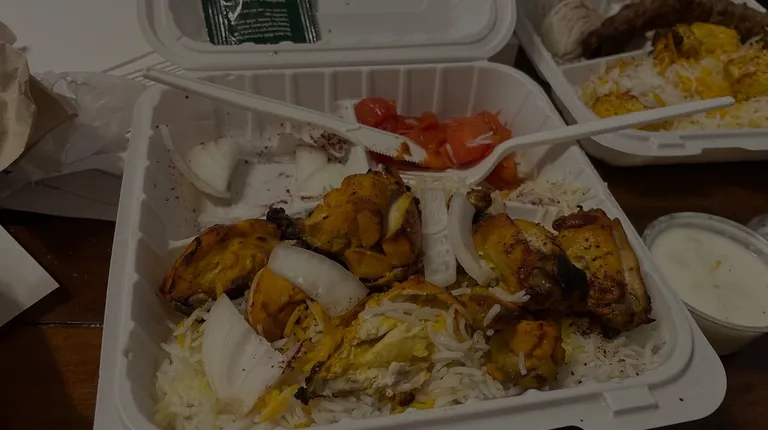 Caspian combo (chicken and ground beef) w/ half rice-half Delicious! Preferred the beef. Came with yogurt sauce and pita