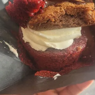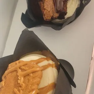 I found Champagne & Cupcakes through a post from @YelpMdburbs and decided to give them a follow on Instagram. A couple weeks later while my sweet tooth was very much present, I saw a story with the day's cupcake menu. Turns out, the dessert trailer would be in my area that afternoon, so I knew I had to try them out! Toya was friendly and patient as I made my choices, there was a lot to go through on the menu, so it took me a little while. I ended up going with the Biscoff Cookie cupcake and the Red Velvet Chocolate Brownie cupcake. My favorite of the 2 was the biscoff! It wasn't too sweet but it was just, delicious. The red velvet wasn't bad, but my favorite part of it was the brownie on top!