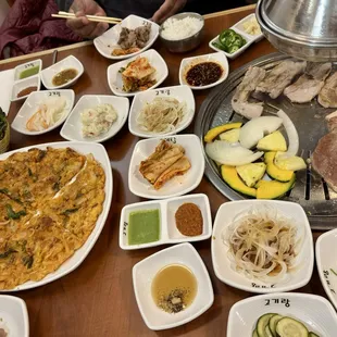 Came here on a Saturday night for dinner. The Place is huge and we got seated immediately but when it came to ordering/banchan and/or drinks it took them awhile to come to our table. But once the food came, everything started to go at a good pace. The food was good but the choices of sauce they had for dipping was interesting. Bossam was thinly sliced and the radish that went along with it was delicious. I would def come back.