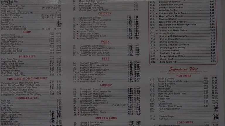 Food is good for great price. Crispy beef is excellent. The menu is very large with a mixture of Chinese and American fast food. I like the fact that you can see the entire kitchen and that it is very clean. Order by telephone in advance so that you are not having to wait for the food.