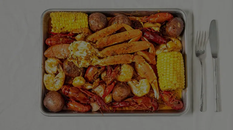 Combo C (1/2 lb crab legs, 1/2 lb shrimp (heads off), 1 lobster tail, 2 corn cobs, 2 red potatoes, and sausage); Cajun/Medium Spicy