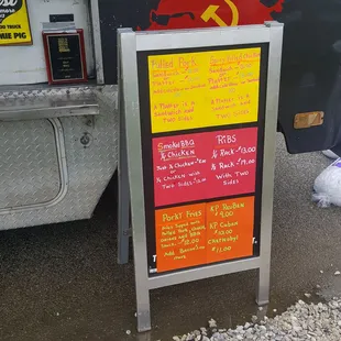 a menu on the side of the truck