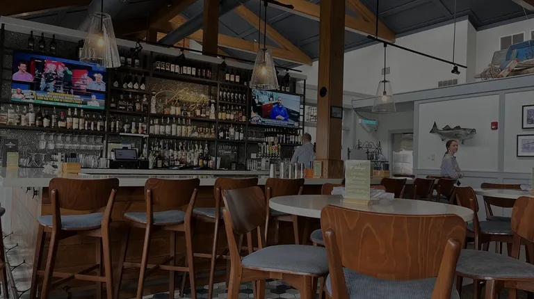 Indoor and outdoor seating on the marina