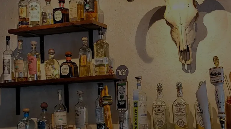 a bar with a cow skull on the wall