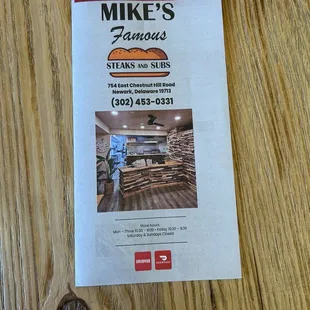 Got home with a large cheese steak and when I walked out the sandwich felt light and thin, and when I got home it was ,long gone Mikes Famous these ne w owners fuckec this place go a mile past and visit Malins market 3 x meat on the large cheesesteak