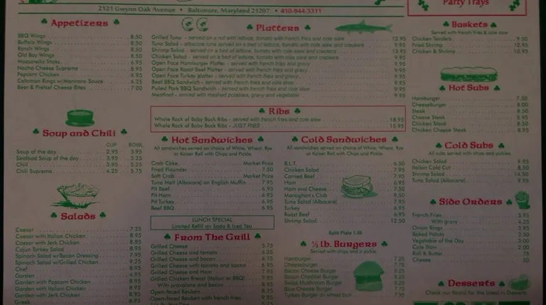Service is fast and friendly. Food always come out hot and fresh. I've had the chicken basket, shrimp basket, cheese steak subs, french fries, Maryland crab soup, crab cakes, Monaghan's Club, Hot Italian Sandwich... It's all good. I've never had an issue with the food or the service and I go there pretty regularly. Also the beer is cold.