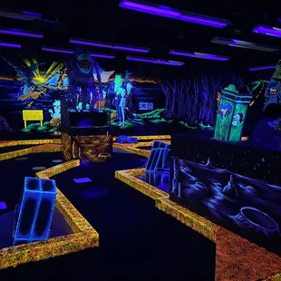 Super fun place! We went on a Wednesday evening and it wasn't very busy so my friends and I got to really enjoy playing putt putt. Everything is designed so well and glows in the dark well. Highly recommend this place for friends hanging out, kid's birthday party, or any event really. It's just a cool place!