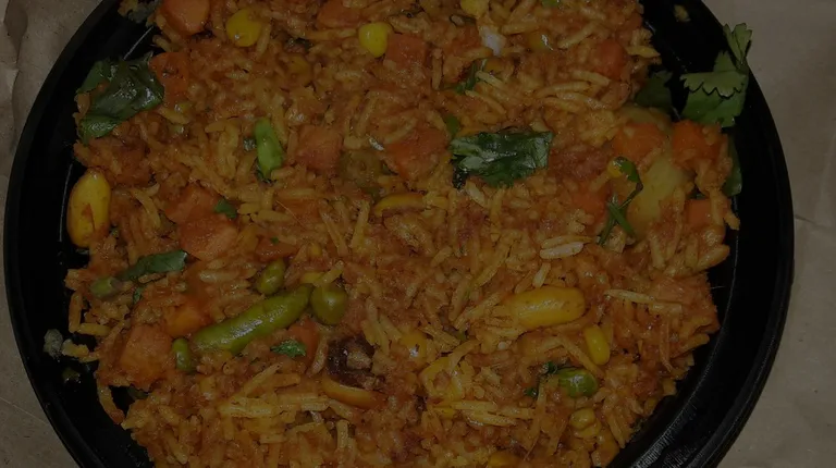 Vegetable biryani and on garlic naan