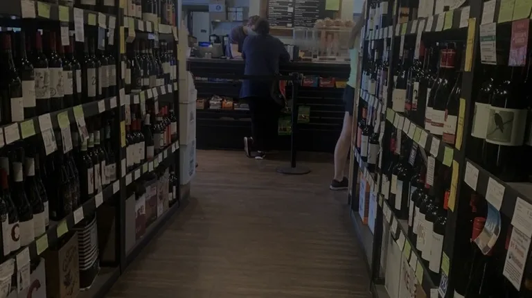 Wine selection and front of store.