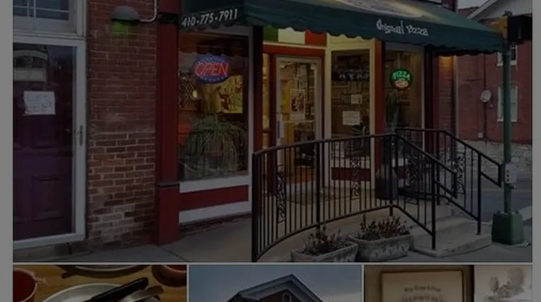 I had driven past this place many times and wondered what it was like inside. It caught my eye with its line of Greco-Roman statues down the sidewalk, colorful flowers, and a large mural on the side of the building. At long last, I made the trip to Union Bridge for no particular reason (it's not really that far from Frederick), and went inside. Parking is across the street in a large, metered lot.The interior is very casual, filled with bright orange booths. You order at the counter, and the waiter brings the food to your table. You pay at the counter when you leave. Please note--they do NOT ACCEPT CREDIT/DEBIT CARDS. Fortunately we had cash...Menu is fairly large and includes pizza, sandwiches, appetizers, and many other items. A sign on the counter advertised homemade rice pudding. We tried a large veggie pizza, which came out rather quickly and was delicious and high quality. I would like to try the white pizza when I go back. Service is efficient and no fuss.My favorite aspect of Original Pizza is that it is in effect a museum of local history. It has the largest collection of old photos of the surrounding area that I have seen in one place. The walls are covered with historical photos, letters, and newspaper clippings, and several display cases of historical items line the walls. A rather unorthodox piece of wall art in the rear of the restaurant shows what appears to be, er, Christoper Columbus bringing pizza to the new land. Egads! Photo attached.So if you are a local history buff, or if you merely enjoy a good pizza and find yourself near Union Bridge, check it out. And then head down to the Union Bridge General Store (see my review of that for more info) for all your diverse shopping needs. Or Esquire Liquors, if you have other plans (ok, really the name Esquire Liquors just amuses me!). If you are feeling truly, truly bold, swing by for a hair cut at the cleverly-named Hair and Now salon (but maybe swing by Esquire first to steel your nerves)...