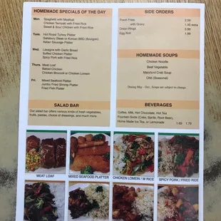 Current menu with pictures of the food they actually prepared!