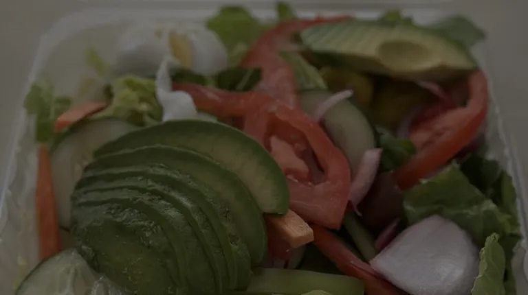 "1 lb" of steamed shrimp, garden salad w avocado and egg