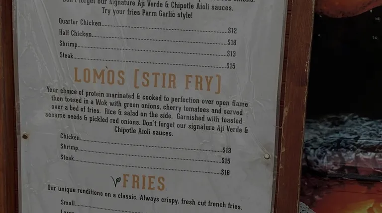 Ordered the chicken box, boardwalk fries and steak lomo. Everything was DEEEELICIOUS! I'm salivating as I write this. Definitely check this truck out! The chicken and steak were perfectly cooked - had that nice char and was soft and seasoned well. The boxes came with a TON of salad and fries. They could have cut the amount in half and I still would have paid the same. I had an entire entree size salad leftover!