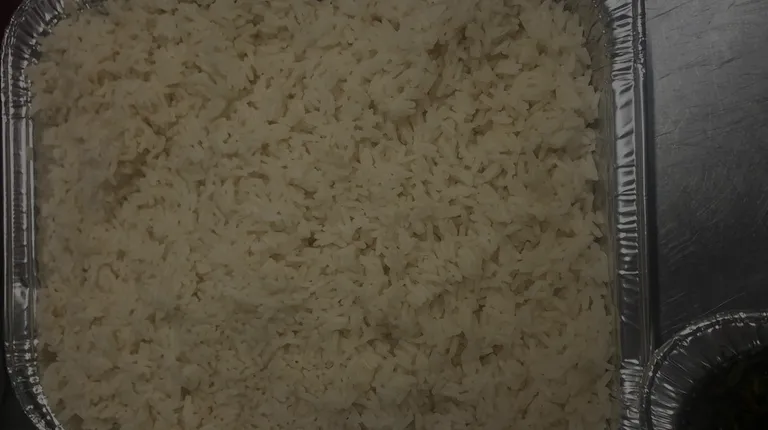 This is the Jollof rice, with the beef. The actual container isn't very big. That's my THUMB, in comparison to the meat portion.