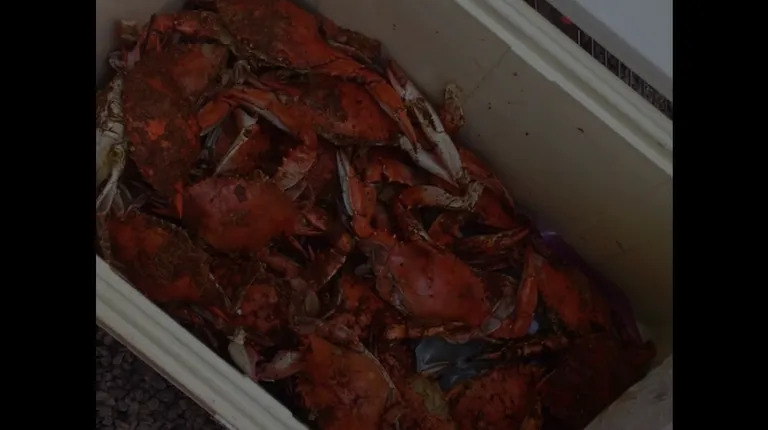 blue crabs in a cooler