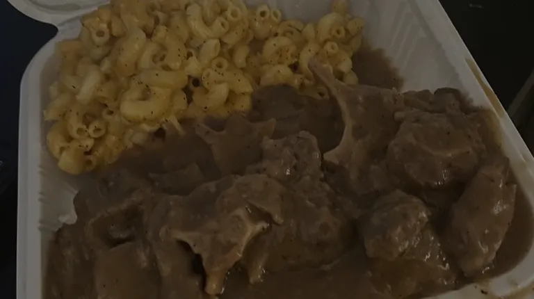 The ox tail was delicious. The gravy sauce complimented the ox tail so well. The white rice with the gravy sauce on top was amazing. The mac n cheese was pretty good as well. A little dry but it did have flavor. The wings were good as well. Flavorful. French fries were descent. French fries that you would expect for any carry out type spot. Overall the food was good. I would def come back for that ox tail. So darn good!