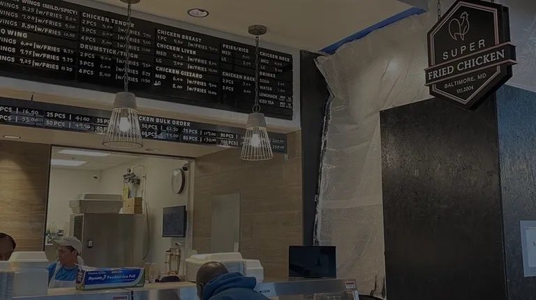 Made my way to the new Lexington Market, though it has already been open for a year or so. Super Fried Chicken is tucked in the corner next to the elevators. Lines can be long, but service is fast. The ladies that help with your order are helpful and friendly. Good thing to know is that they'll ask what sauce you want (hot sauce, ketchup, salt & pepper, etc) on your order of chicken, fries, etc. Be prepared with what you want, otherwise you will hold up the line. I got an order of 3 wings and western fries, and gizzards. Both were ok. A little on the bland side, but what was the most disappointing is that the food was at room temperature (during the lunch rush!).If you're craving wings, this place will satisfy, otherwise, hit up the other food stalls.