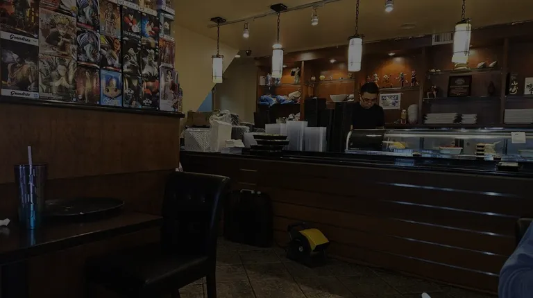 Overall view of the untidy sushi bar area.