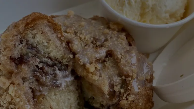 Our Sweet Fields operates out of B'More Made with Pride shared kitchen. They specialize in cinnamon rolls and have lots of different flavors. They recently added the cinnamon roll of all cinnamon rolls - a DEEP FRIED cinnamon roll served with ice cream!! You have to follow their IG account to see when they are offering it. But I HIGHLY suggest catching it when you can. It is perfectly fried, crispy outside, with a soft and fluffy center. The flavor is point and texture combo (including the ice cream) is out of this world!! I think it was about $15 and worth every penny!!