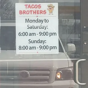 a menu for tacos brothers
