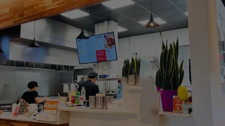 I believe I had seen this place on tv or some kind of food advertisement and was so glad when I realized I was just blocks away. Ordered threw their kiosk pad and took about maybe 15 minutes for wait time. The sweet chili sauce on the wings were nice chicken was fried extra hard but I gotta say not much to really rave about. The fried rice cakes were actually good and I'm glad they weren't as bland and chewy compared to my last experience eating rice cakes. The fries seasoned with some kind of powder seasoning but it was flavorless and sort of disappointing. The boneless wings were supposed to be seasoned with lemon butter but had no seasoning on it at all they gave you a wedge of lemon on the side and that was about as much of that seasoning you were to get. It's a nice spot but nothing what I thought it would be.