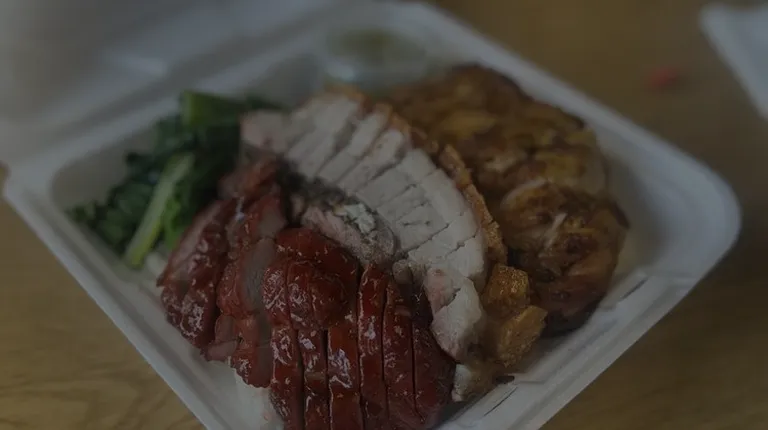 Crispy Pork , BBQ Pork and Duck with rice and bok choy