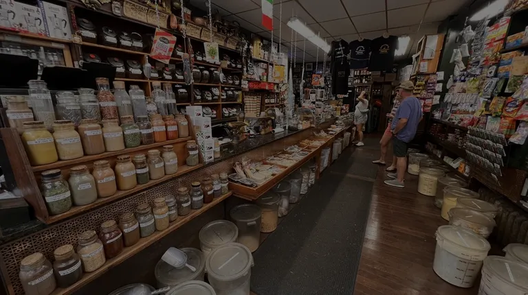 The interior of Polcari's Coffee Shop in The North End Boston various Italian packaged goods & spices - an institution since 1932