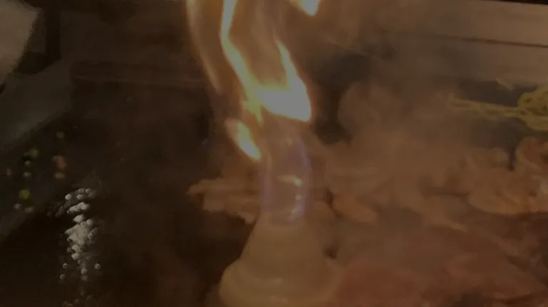 Friend rice. Extra $4 charge per person for fried rice. Steak and bean sprouts.