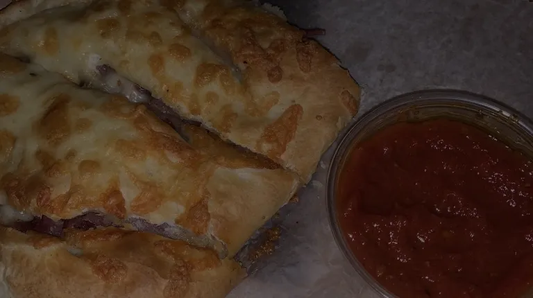 the reason why the picture is missing 1/4th of the calzone is because i couldn't still myself from eating it. So good 10/10