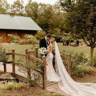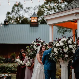This is the cutest wedding venue. We attended a wedding here in September. The ceremony was at the gazebo. The strung lights were super cute. A small bridge leads you to the barn where the reception took place. The pond has koi fish! Once it cooled down, the barn doors were open. The view of the grounds was picturesque, especially with the lights. The grounds are well kept. There are so many beautiful flowers and plants throughout. I noticed an area with lawn chairs and a fire pit. There's plenty of parking.